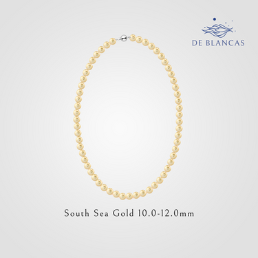 This exquisite Golden South Sea pearl necklace features luminous 10.0–12.0mm pearls, hand-selected in both AAA and AAAA quality for their warm golden hues and exceptional luster. Each pearl is naturally radiant, showcasing the signature glow unique to South Sea varieties. The necklace can be customized to your preferences and arrives in a luxury jewelry gift box — an elegant choice for celebrating life’s most meaningful moments.