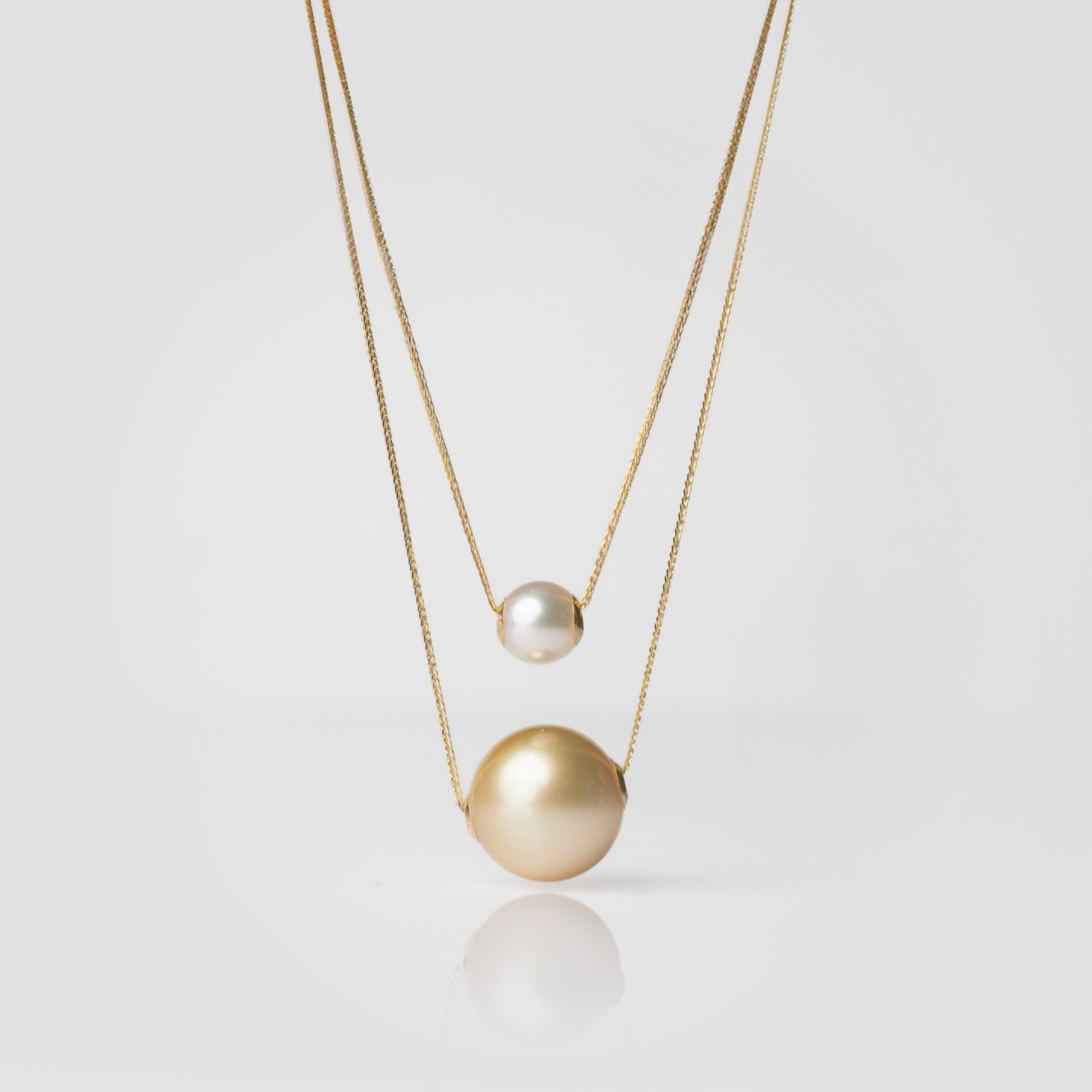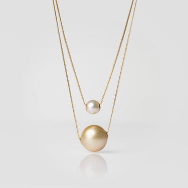 TWILIGHT HARMONY | Colgante de perla Akoya de 5 mm con perla dorada de los mares del Sur de 11 mm