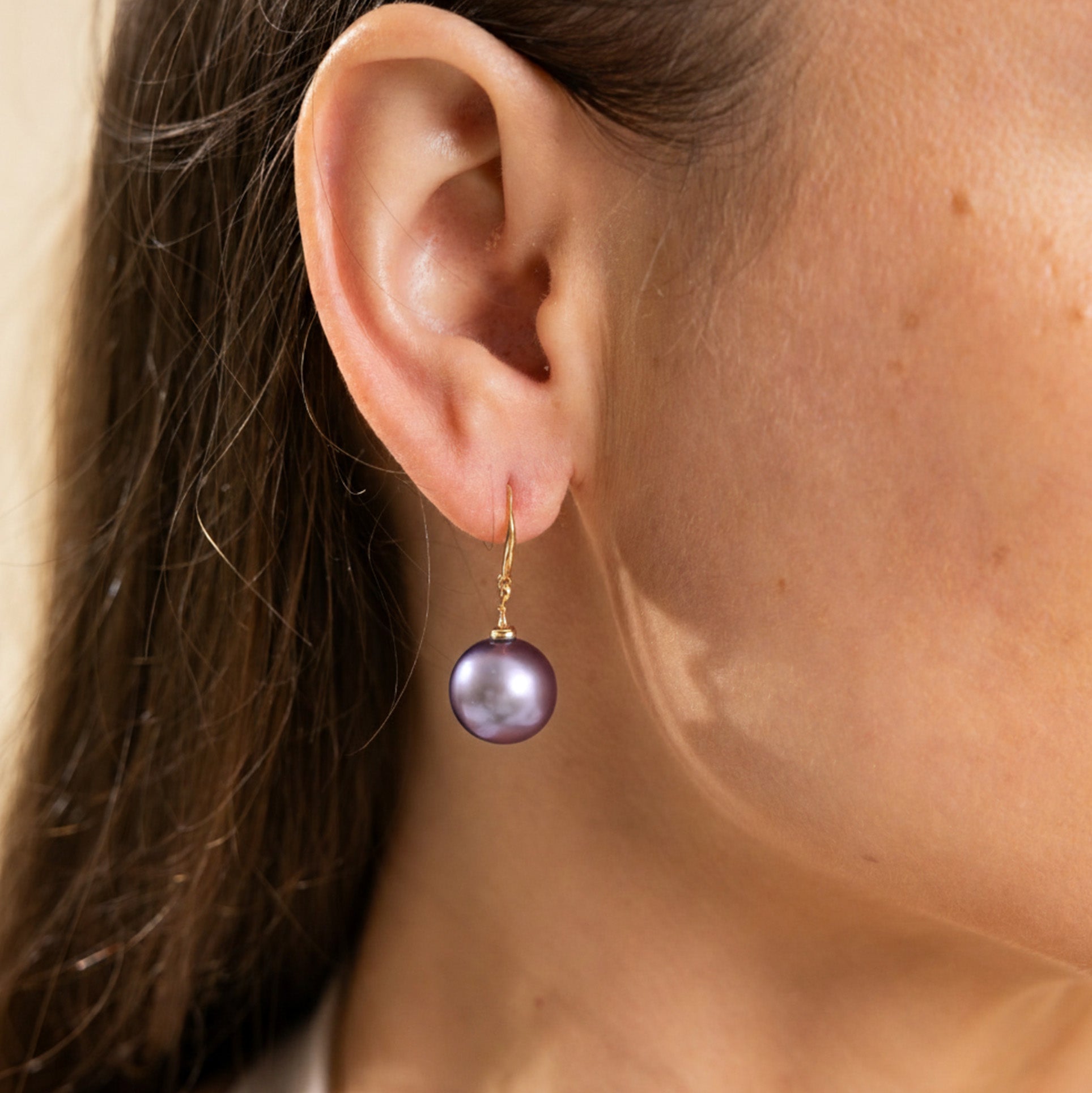 Elegant in form and radiant in hue, each pearl is gracefully suspended from a sleek gold hook, creating a silhouette that is both timeless and modern. Their minimalist design highlights the natural beauty of the pearls, making them a versatile accessory for both everyday refinement and special occasions.