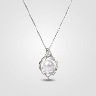 An ode to cosmic elegance, this white freshwater pearl pendant radiates celestial brilliance. The luminous pearl is embraced by a sculptural arrangement of curves, pavé-set stones, and marquise-cut accents — echoing a spiral of stardust in motion. Every detail reflects a harmony between fluidity and structure, making this piece a statement of refined opulence and modern grace.