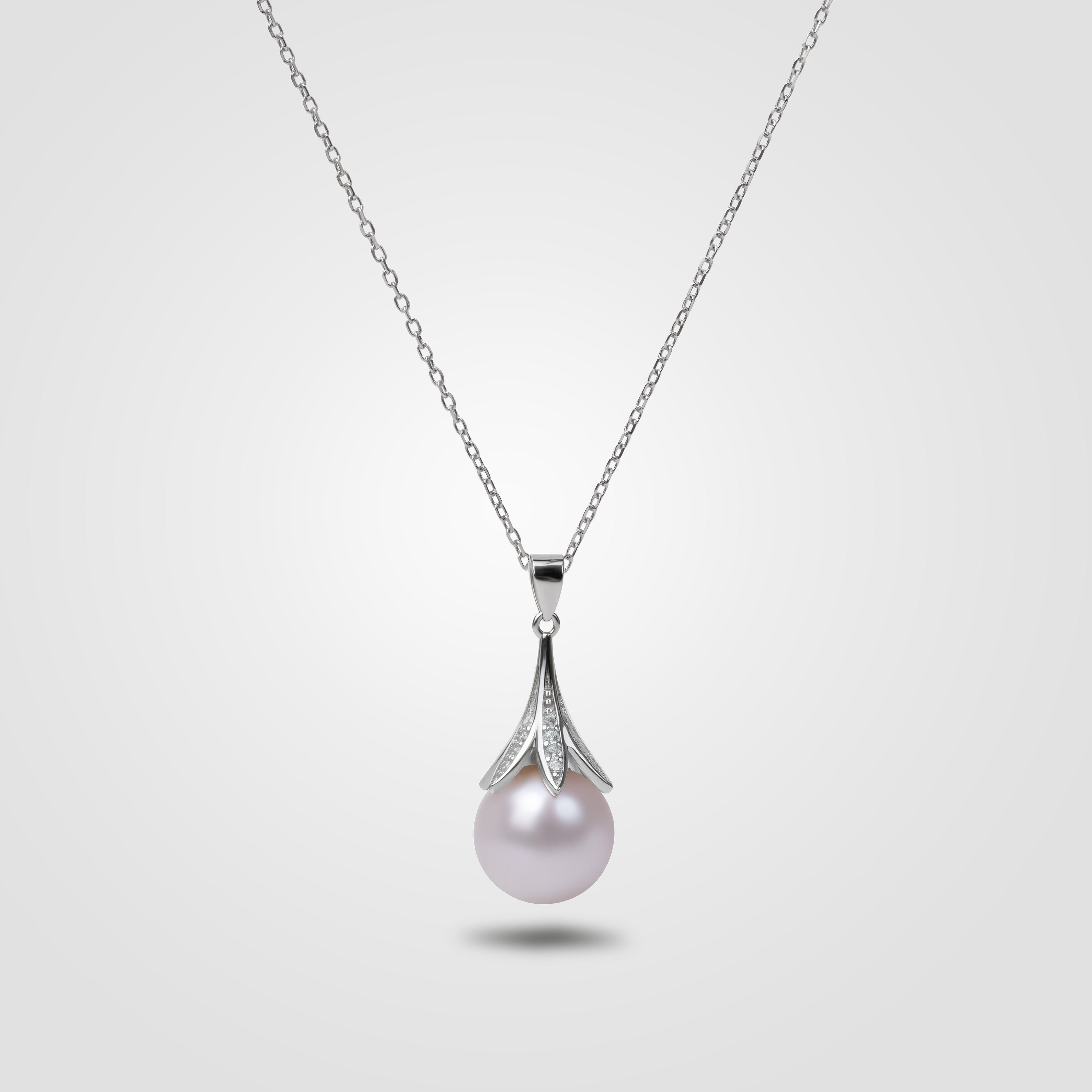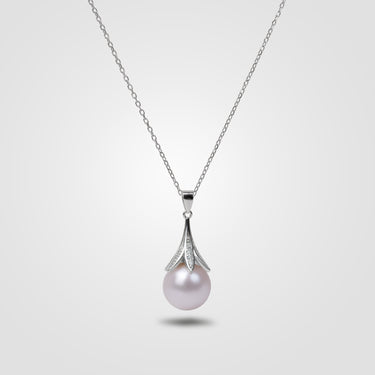 The Pearlisa pendant embodies timeless sophistication with a luminous white freshwater pearl cradled in a petal-inspired crown of rhodium-finished sterling silver. Hand-selected for its mirror-like luster and near-perfect symmetry, the pearl reflects a soft celestial glow — a symbol of purity and refined femininity. Balanced between modern sculptural lines and organic grace, this pendant transforms natural simplicity into a statement of high luxury.
